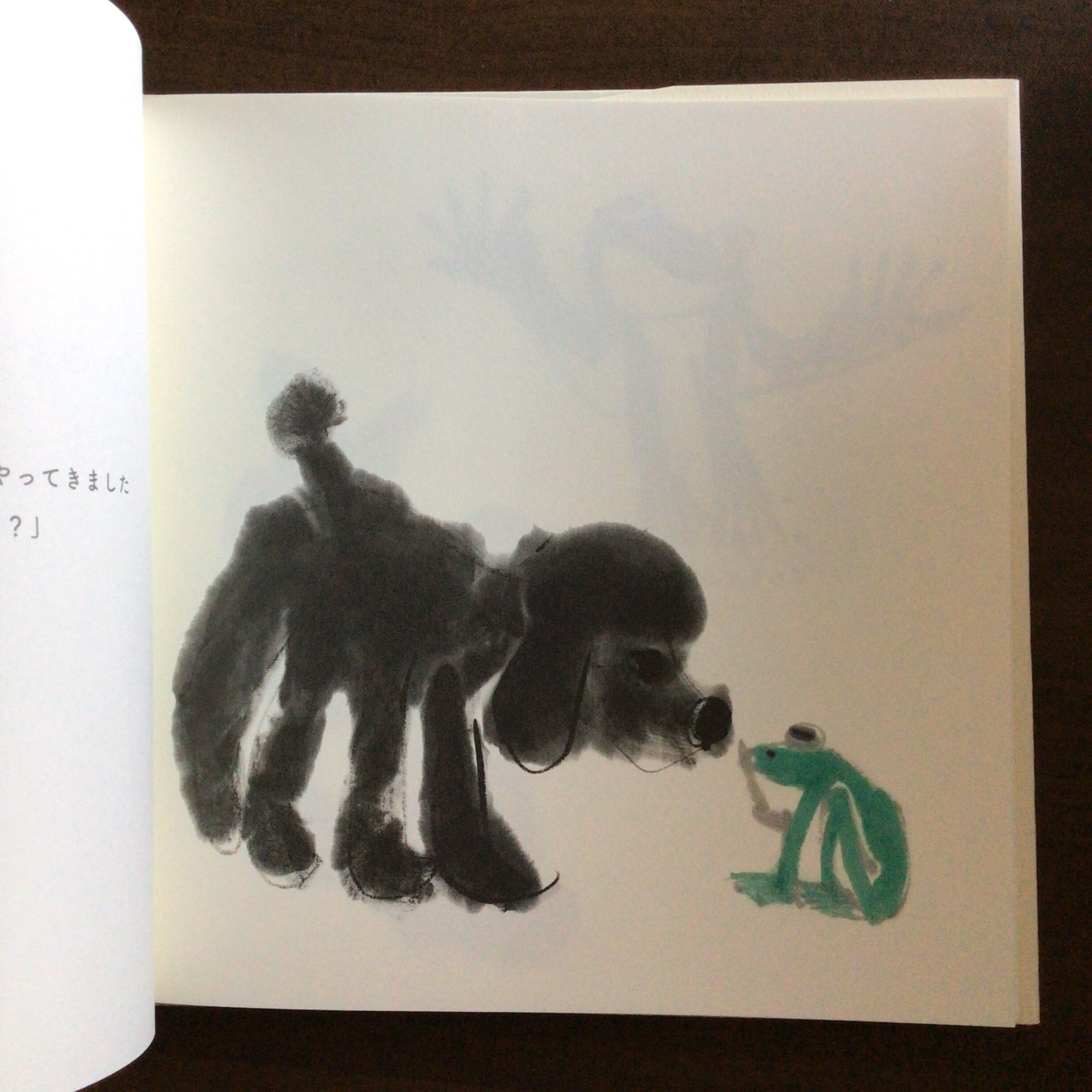 くろい犬のくろちゃんに、友達のかえるくんがたずねます。